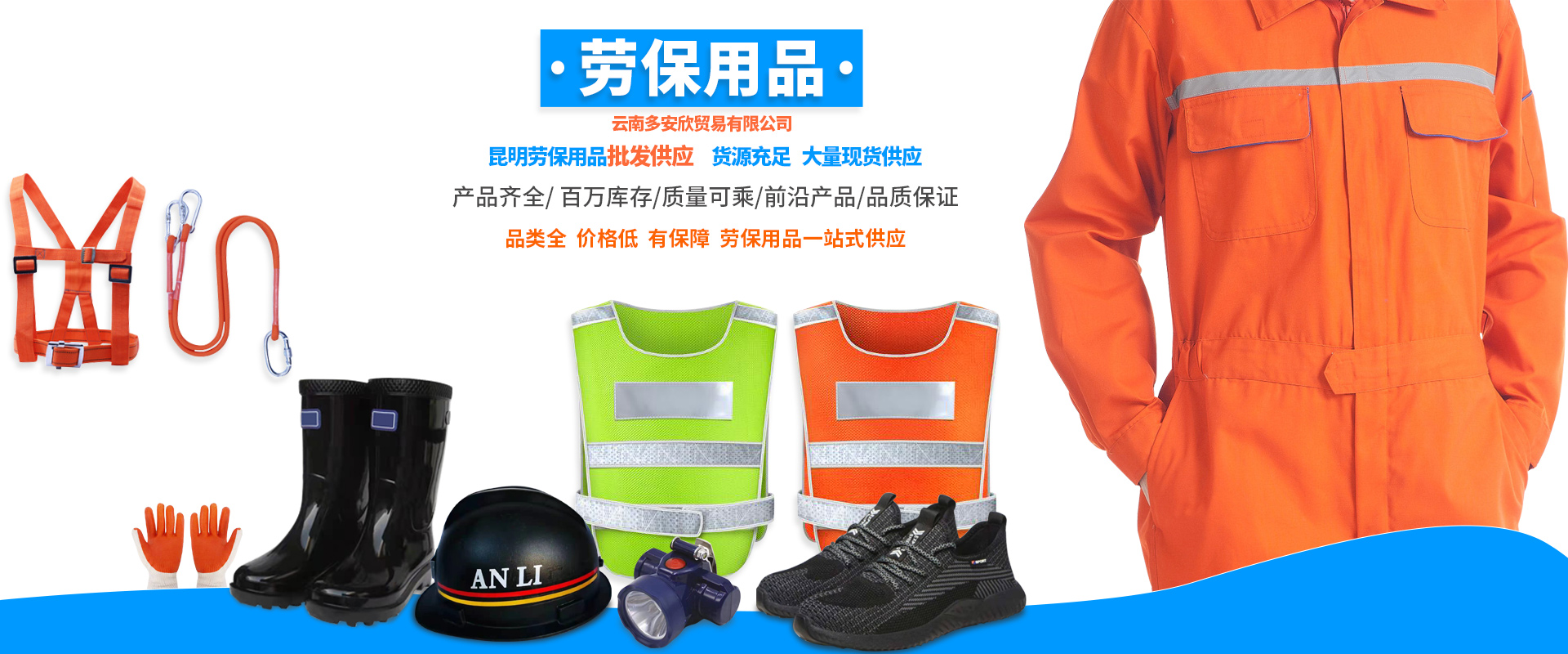 云南多安欣貿易有限公司位于云南省昆明市官渡區昌宏路東聚五金建材市場東區10-10。云南多安欣貿易有限公司是一家集生產。銷售、批發為一體的大型勞保用品單位。公司成立18年有余,在這18年里我們憑借我們行業知識,認真的態度和售后服務,在云南市場迅速崛起,同時代理銷售國內外各優良廠商(普通、特種)勞動防護用品。安全防護用品,公司現有員工15人,公司一直以來,堅持本著以“按用戶所想,急用戶所需”的宗旨,從款式設計,面料選定,工藝制作,為精益求精的服務態度,迅速在市場中得到用戶和市場的肯定,公司經營品種達到一萬余種,包含了勞保用品的各個系列,如定制工裝、頭部防護,呼吸防護,勞保鞋,電力物資雨衣類眼臉部位防護,3m系列,墜落安全防護,交通安全設施電筒類多功能防護服、防塵防毒。耐酸堿。耐油,耐高溫,防寒,阻燃,隔熱,氣體監測,絕緣防靜電,防砸高空墜落,救護,逃生,等特種勞保用品,如(彩條布,吊帶軟梯噸袋安全帽,...